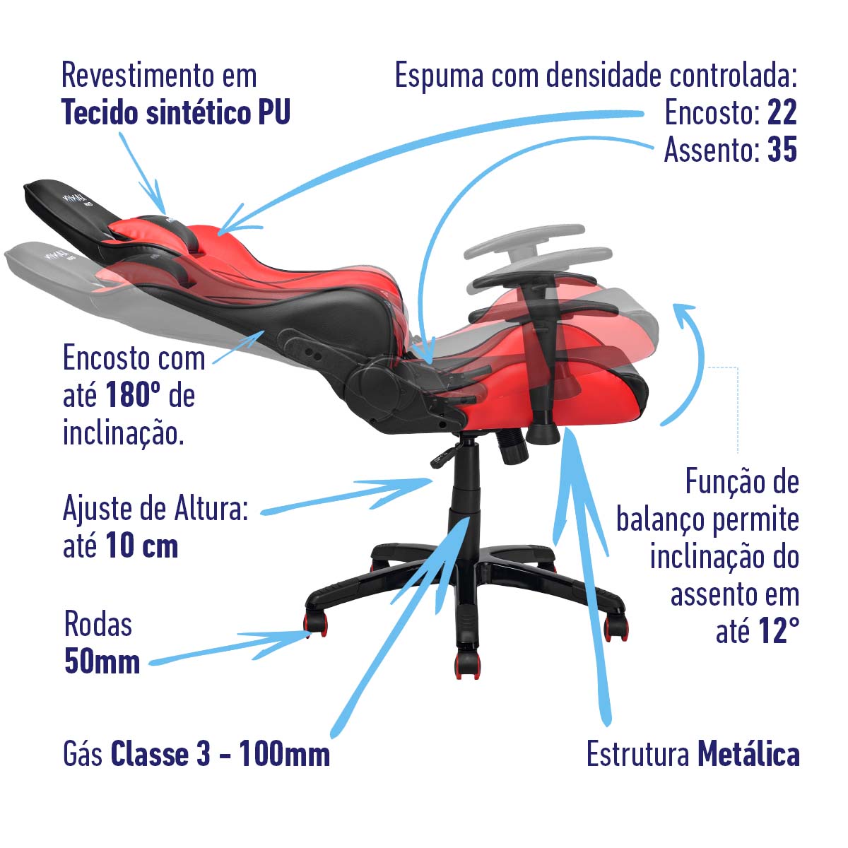 Nome produto: Cadeira Gamer MX5 Giratoria Preto/Vermelho